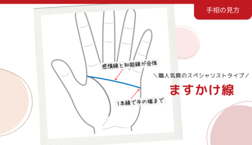 手のひらの丘 (8) 手相の基本 (18) 生命線 (13) 感情線 (24) 知能線(頭脳線) (26) 運命線 (14) 太陽線 (14) 財運線 (7) 補助線 (8) 結婚線 (9) 恋愛線 (3) 離れ型 (28) 十字形 (5) ますかけ線 (16) ラッキー相 (10) 劇レア相 (3) 金星丘 (13) 月丘 (9) 木星丘 (4) 土星丘 (5) 太陽丘 (13) 水星丘 (11) 火星丘 (6) 地丘 (5) 有名人の手相 (8) 手相事例 (17) この線なんだ? (6) 手相本 (15) 開運 (3) 金運 (15) 恋愛運 (7) 結婚運 (7) 仕事運 (3) 社会運 (2) 健康運 (4) 注意報 (14) 手相Q&A (7)