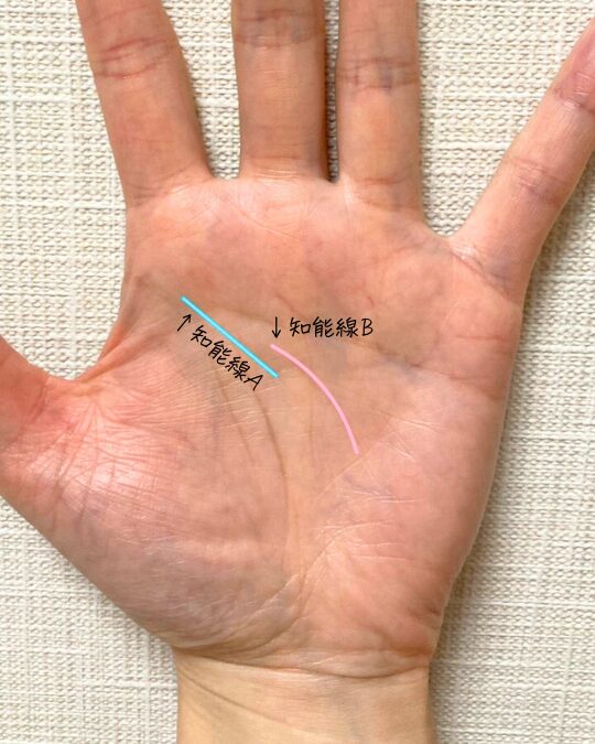 知能線Bは↓中寄り知能線↓の特徴があります。