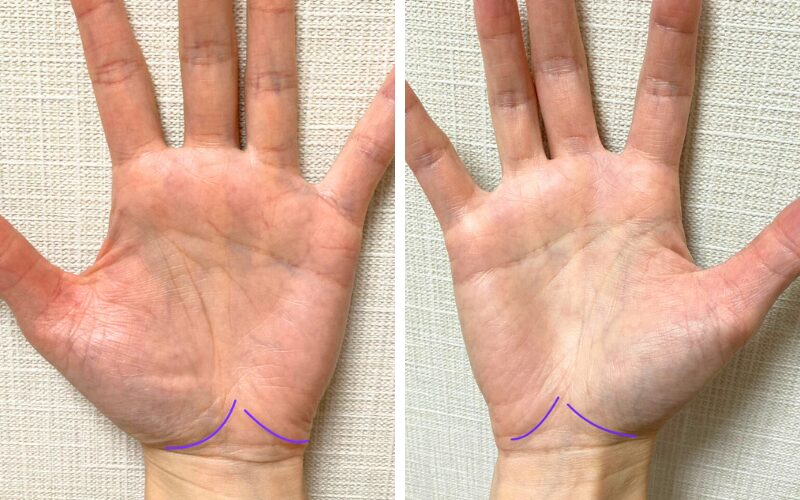 内側に緑の生命線があるので、右手も二重生命線ですね。