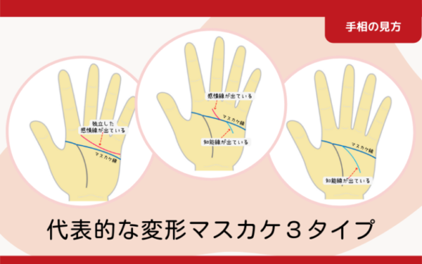 ③マスカケ線から↓ピンク色の感情線↓が出ているので、変形マスカケとなる。